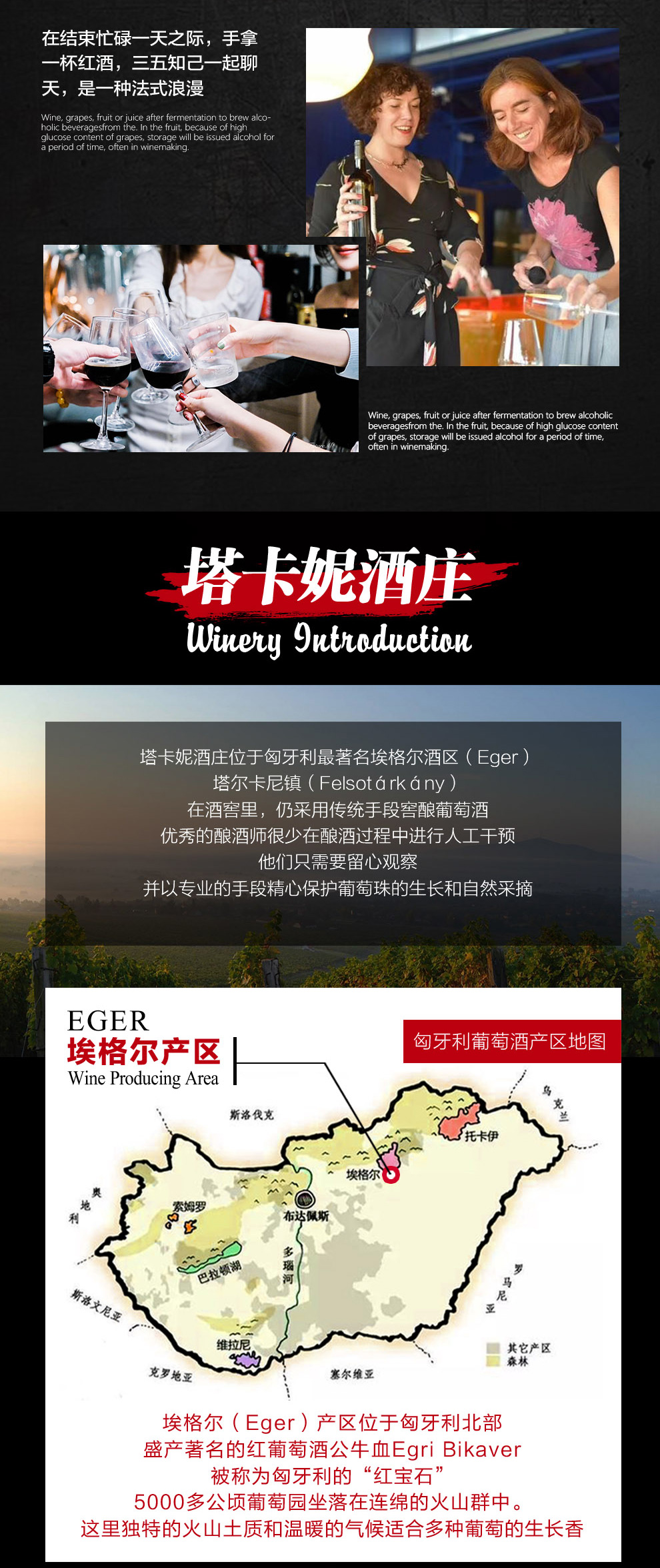 葡萄种类:赤霞珠、黑品诺、蓝珐琅、波尔图