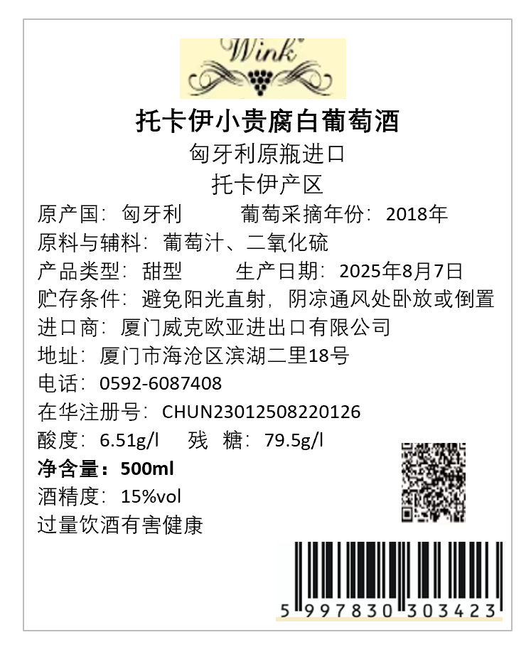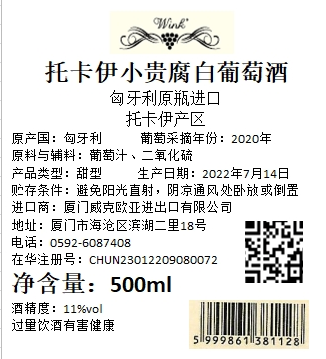 葡萄酒类型:贵腐甜白